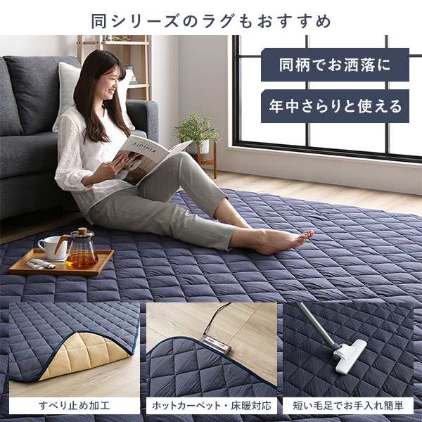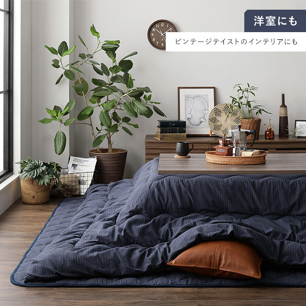 先染めの生地を使用することで、品のある無地調のこたつ布団に。