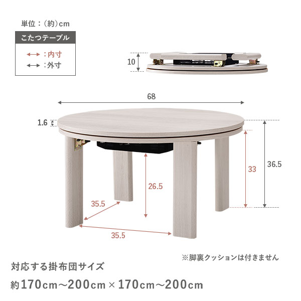【商品名】 こたつ 単品 幅68cm 円形 ホワイトウォッシュ×ナチュラル リバーシブル天板 折りたたみ式 エンボス加工 こたつテーブル 完成品 【ジャンル・特徴】 こたつ こたつテーブル ローテーブル センターテーブル インテリア家具 リビング ダイニング 引っ越し 引越し 新生活 新居 プレゼント コタツ こたつてーぶる 炬燵 火燵 折りたたみ 折り畳み 天板滑止め付き 軽量 軽い 丸形 円型 リビングテーブル