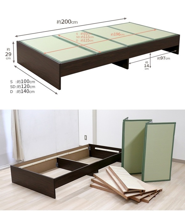 薄型畳付きヘッドレス畳ベッド桔梗(オープン・ロー)