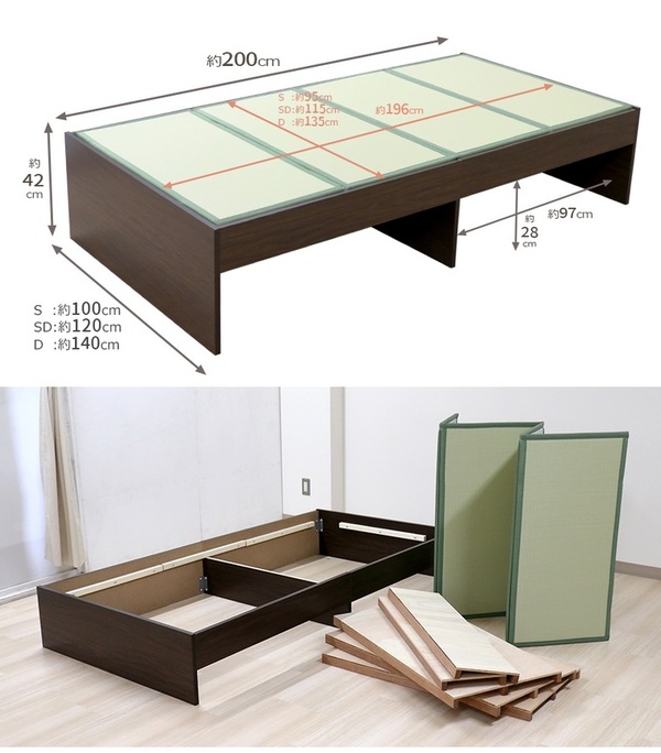 薄型畳付きヘッドレス畳ベッド桔梗(オープン・ハイ)