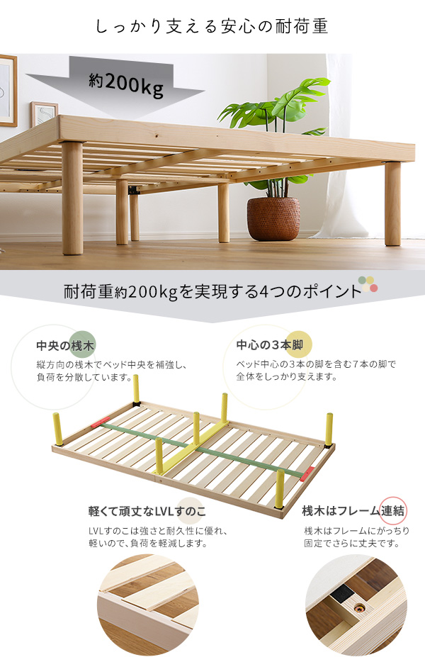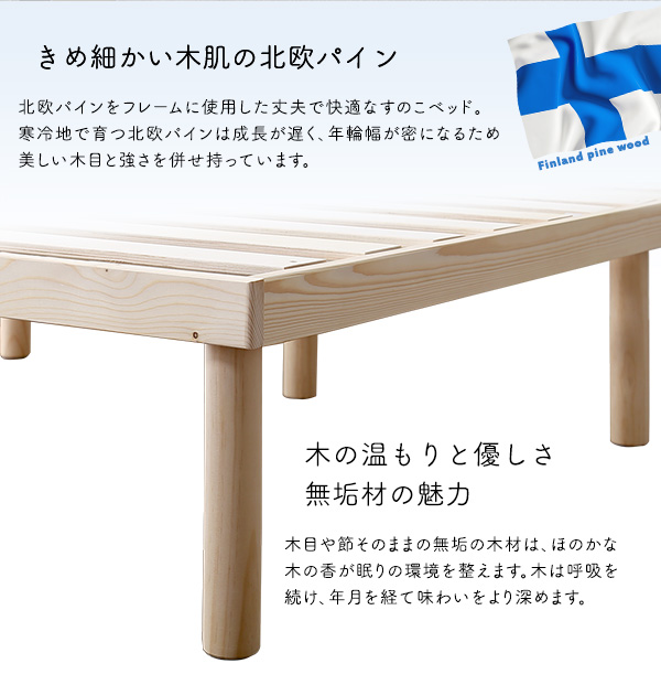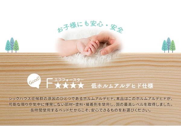 北欧産パインフレームを使用し、通気性と耐久性にも優れた頑丈設計を採用!低ホルムアルデヒド仕様で、F★★★★(フォースター)獲得、健康にも配慮した商品です。