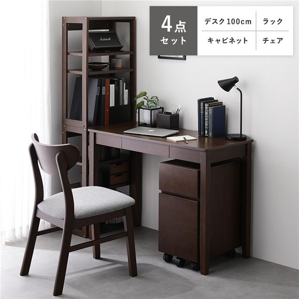 【商品名】 天然木 デスクシリーズ 4点セット デスク 100cm幅 + ラック + キャビネット + チェア ブラウン デスクセット 【ジャンル・特徴】 パソコン 机 学習机 ワークデスク PCデスク 勉強机 学習デスク パソコン机 仕事机 勉強デスク PC机 収納ラック オープンラック 収納ワゴン 袖机 サイドラック デスクワゴン サイドワゴン オフィスチェア パソコンチェア パーソナルチェア ワークチェア PCチェア 椅子