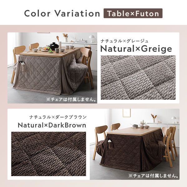 ・本商品は「こたつテーブル+こたつ掛け布団 2点セット」になります。チェアは付属しませんのでご注意ください。