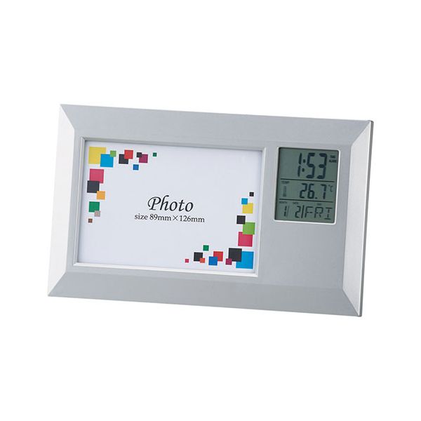 デジタル多機能時計とフォトフレームが合体したデスクアクセサリーです。