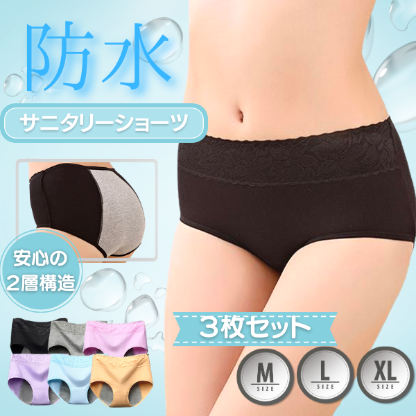 サニタリーショーツ 3枚セット 綿 夜用 大きいサイズ 防水 スポーツ セット おしゃれ コットン 昼用 安い レース パンツ レディース
