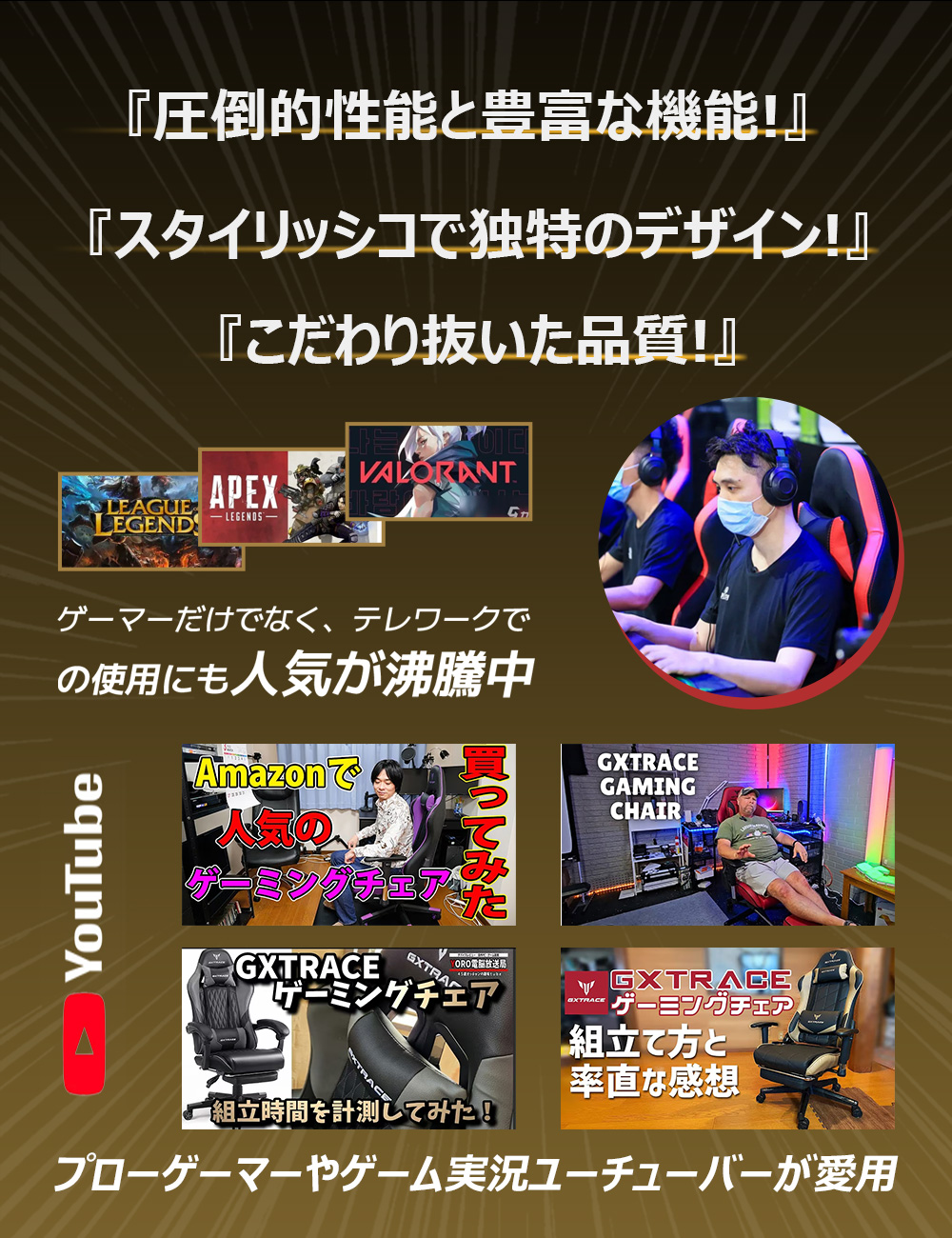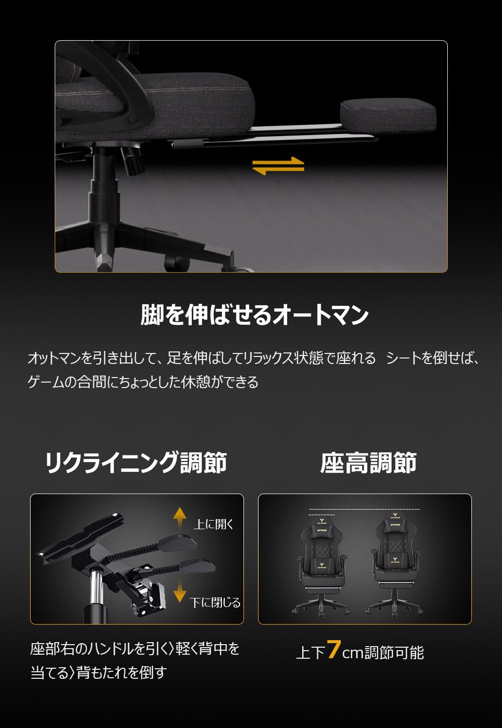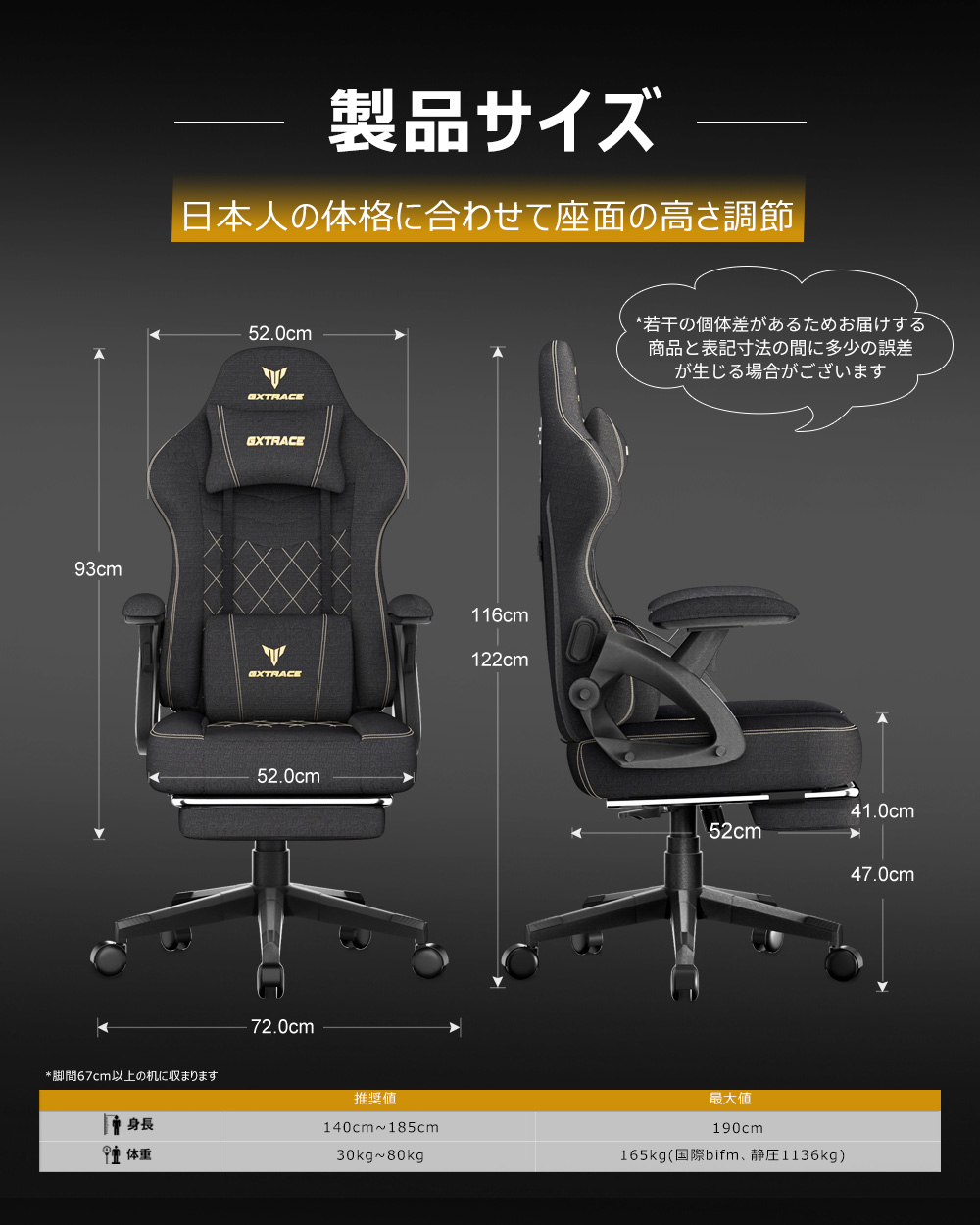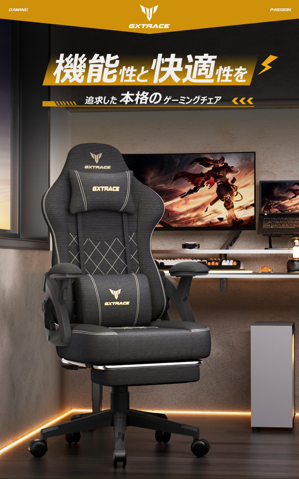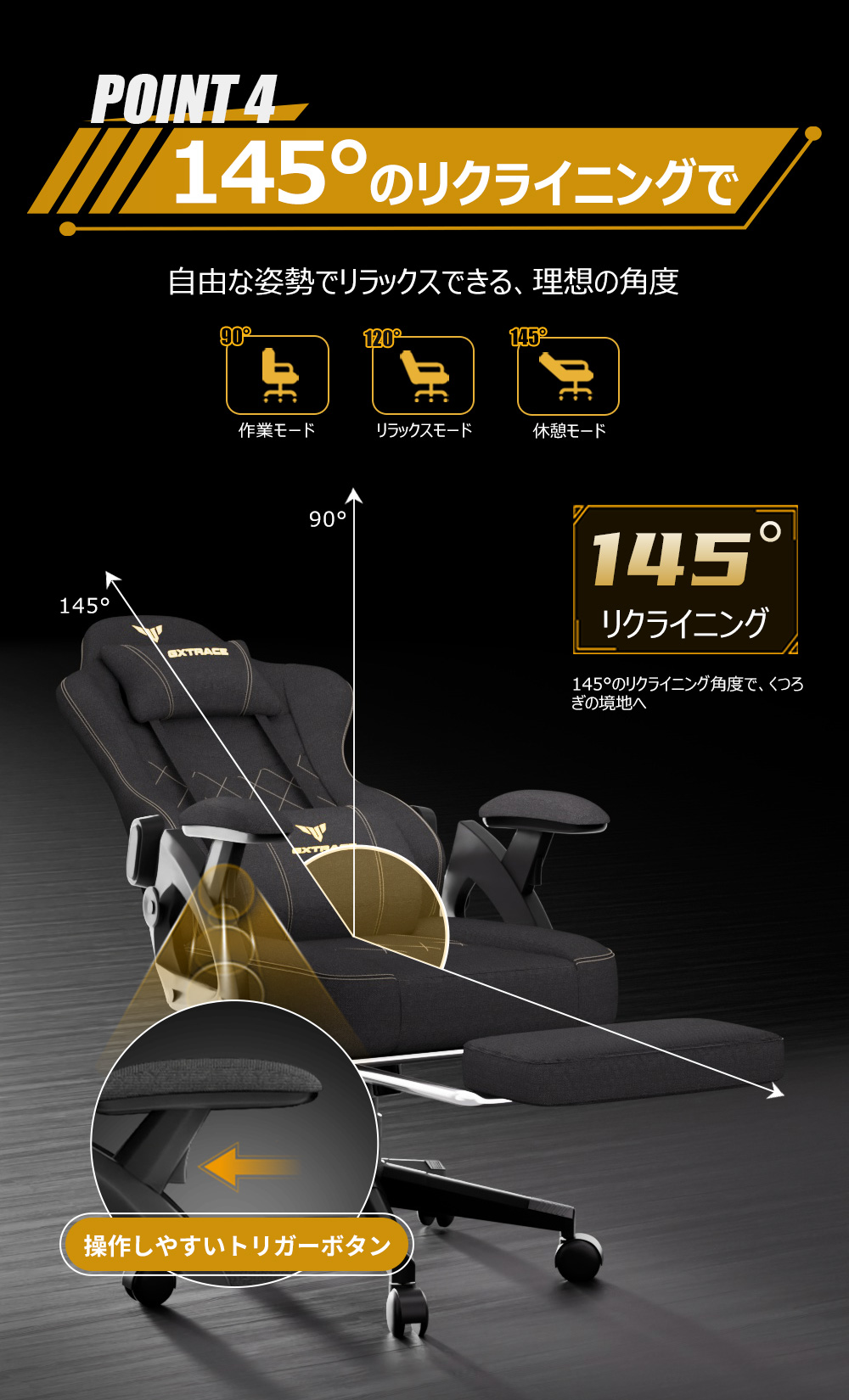 GXTRACE ゲーミングチェア ゲームチェア 椅子 オットマン付き 145°リクライニングチェア オフィスチェア パソコンチェア