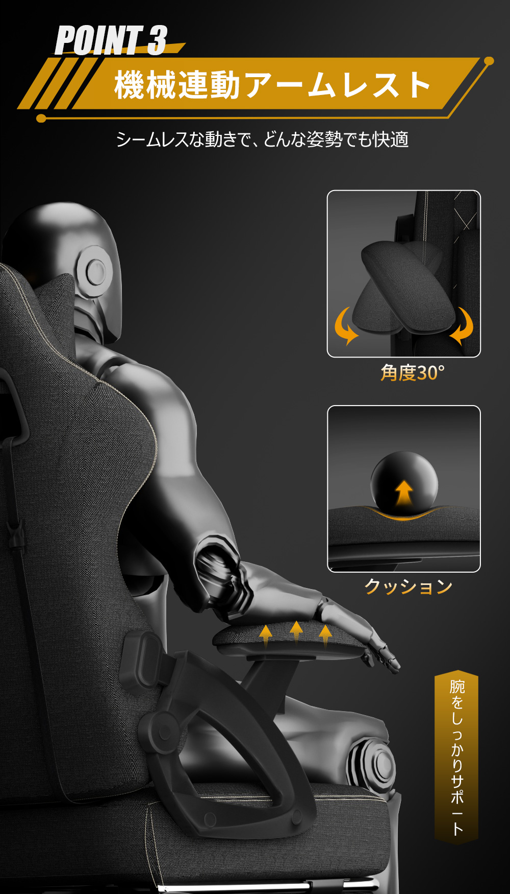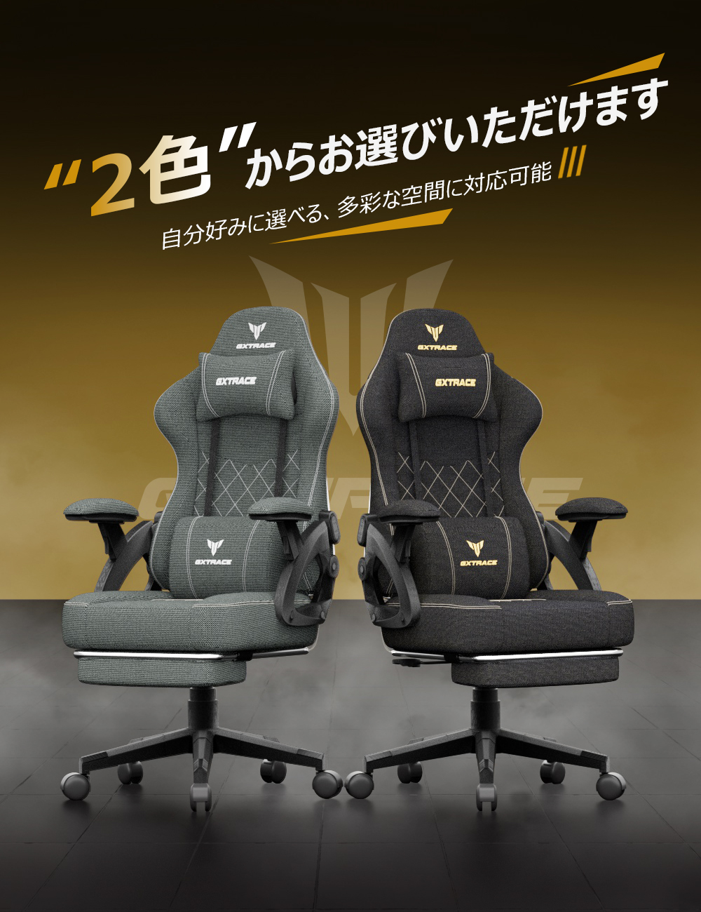 人間工学の理念に基づいて設計されたゲーミングチェア、スタイリッシュなデザイン。