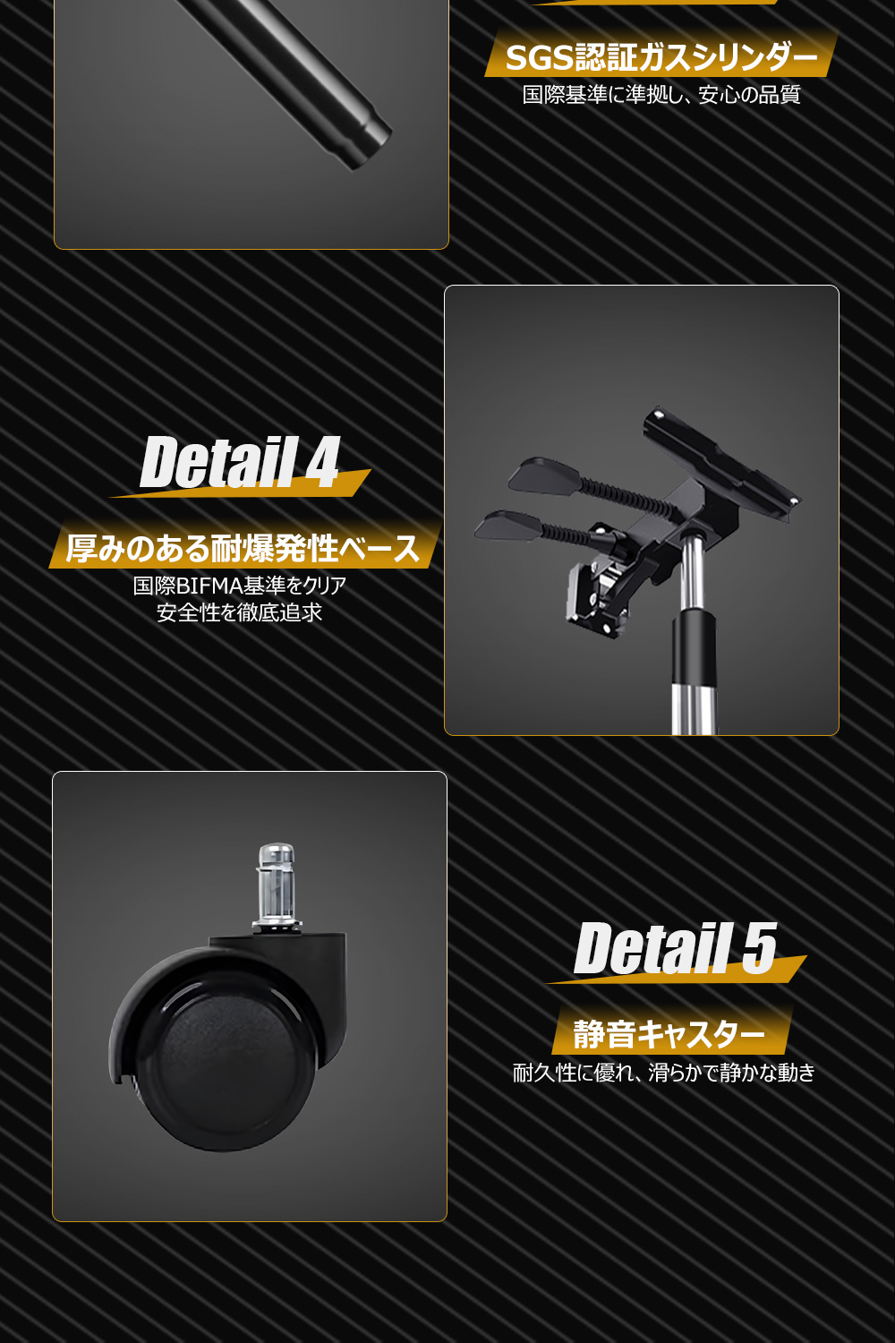 【フル装備のゲーミングチェア】昇降アームレストは多段階の調節可能、腕の重さによる負担を軽減します。製品は人間工学に基づいて、座面の昇降、アームレストの高さ調節、収納式オットマン、ヘッドレストのサポートは、ユーザーに快適なゲーム体験をもたらしてくれます。