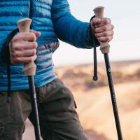 1本約140gという軽さを誇るトレッキングポール、通常使用の他、