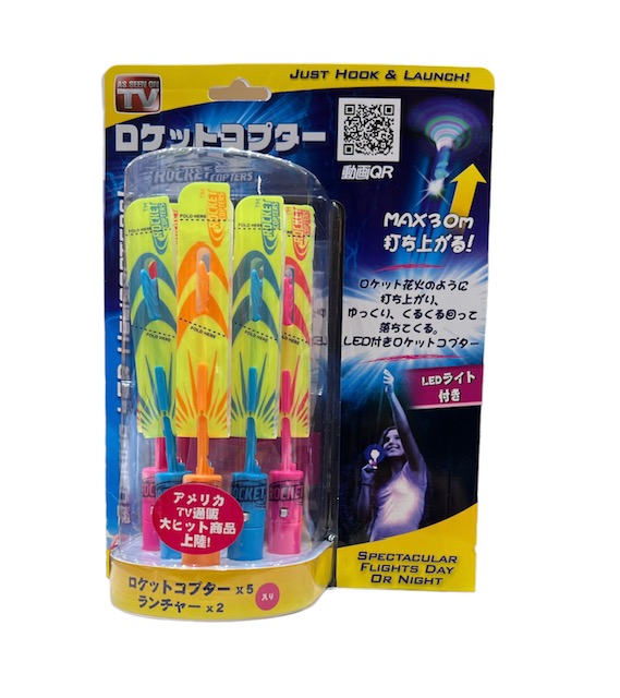 米TVショッピングにて驚異的なセールスを記録したロケットコプターが日本上陸!ロケット花火のように打ち上がり、ヘリコプターのように舞い降りる! LEDライト、笛付き。