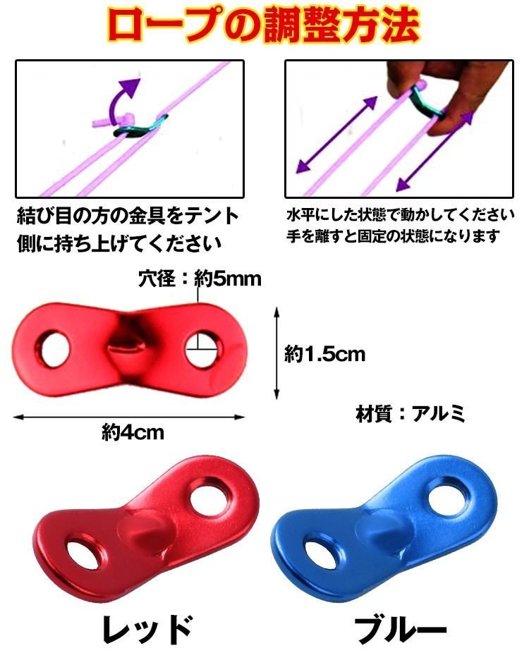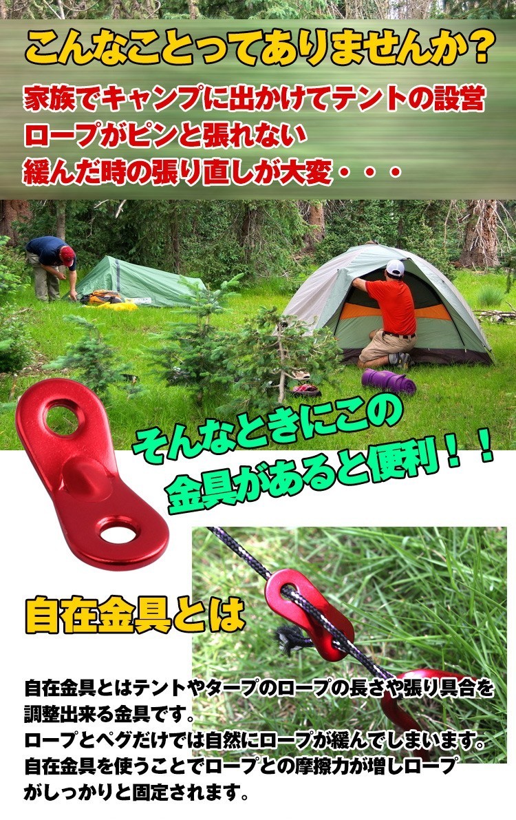 自在金具 アルミ 12個セット 12pc ロープ固定 長さ調整 設営 テント用 タープ用 キャンプ アウトドア レジャー ad178
