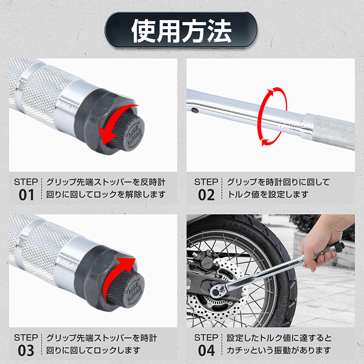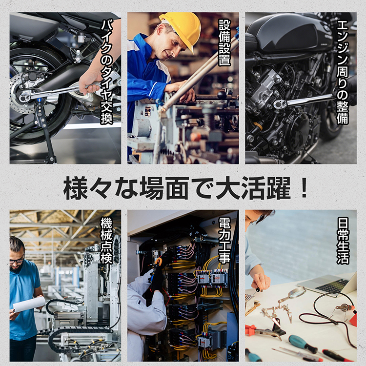 ■ 19〜110N・mのトルク範囲でバイク・車の整備に対応します。