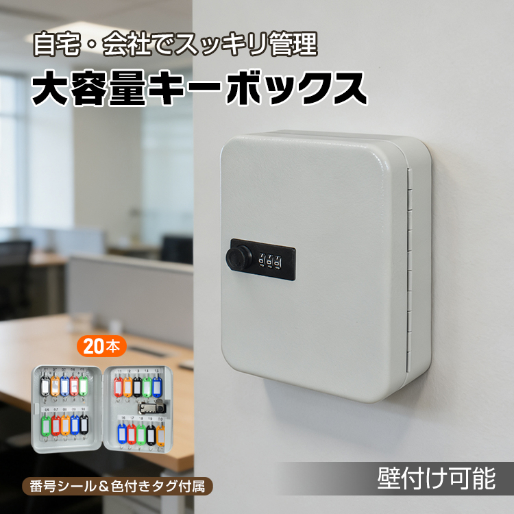 キーボックス 壁掛け 屋外 鍵ボックス ダイヤル式 暗証番号 大容量 20本収納 キーキャビネット 鍵隠し 鍵 収納 保管 色付きタグ付き 壁固定 タグ付 防水 玄関 屋外対応 セキュリティキーボックス 防犯 鍵管理 キー管理 一括管理 オフィス 店舗 民泊 工場 不動産 施設 管理用 家庭用 業務用 壁付け 金属製 頑丈 安心 共有鍵 管理ボックス おしゃれ クリスマスプレゼント ギフト ポイント利用 爆買