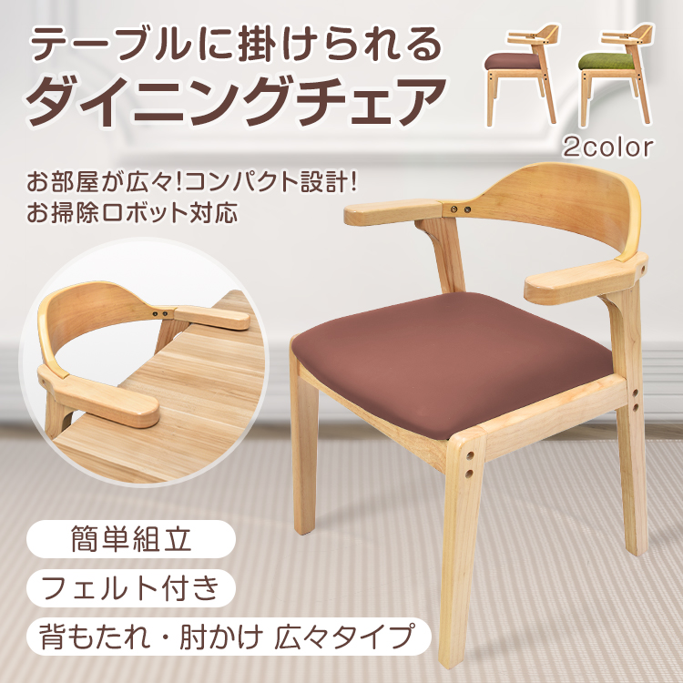 ダイニングチェア 1脚 肘付き 木製 レザー 肘掛け椅子 背もたれ 介護椅子 フェルト付 チェア イス 椅子 ハーフアーム アームチェア 合皮 クッション ハンキング