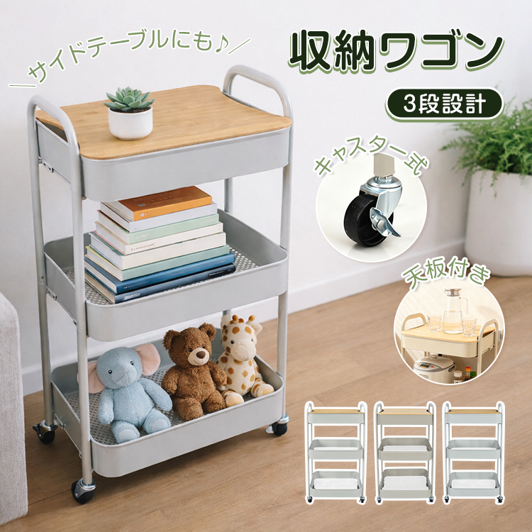 キッチンワゴン 天板 キャスター付 スリム 3段ワゴン 収納ラック 隙間収納 スチールワゴン キッチン収納 ワゴンラック テーブル メッシュ バスケットトローリー