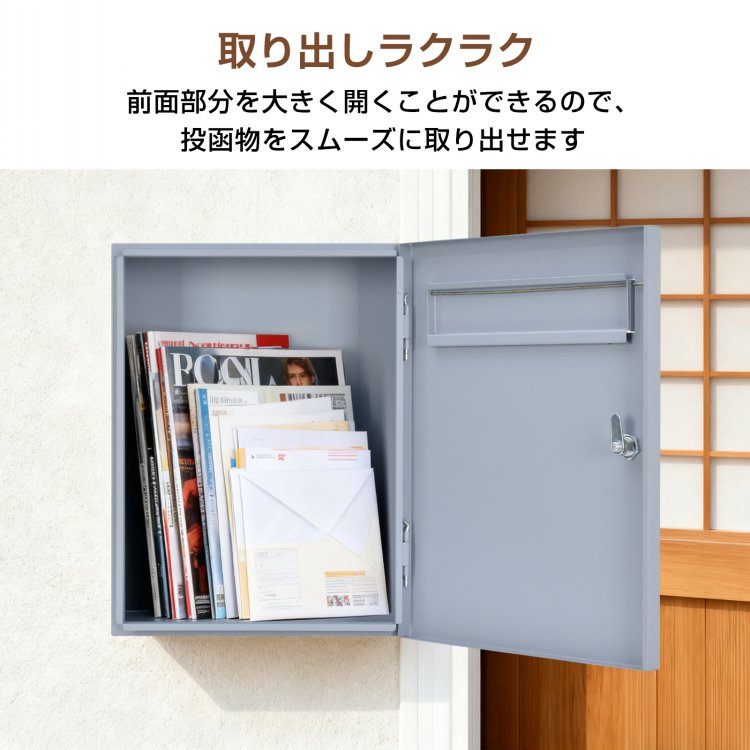 ■ 前面部分を大きく開くことができるので郵便物を楽に取り出せます