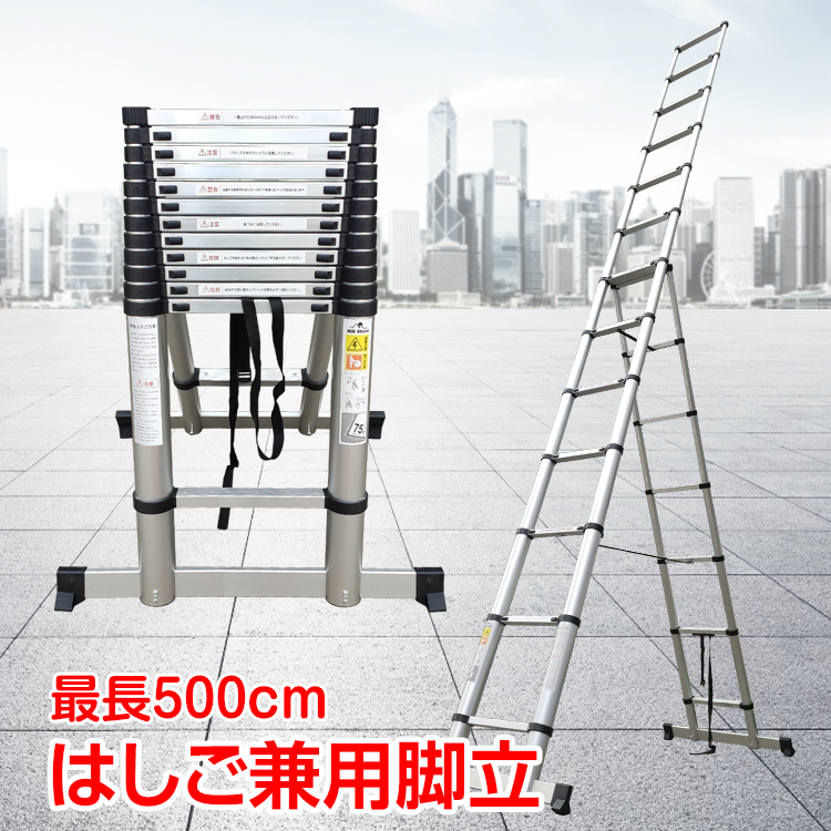 はしご 伸縮 脚立 5m 梯子 兼用 アルミ 伸縮はしご 調整 ハシゴ スーパーラダー 安全ロック 滑り止め 耐荷重120kg スライド式 高所作業 洗車 足場 雪下ろし 掃除