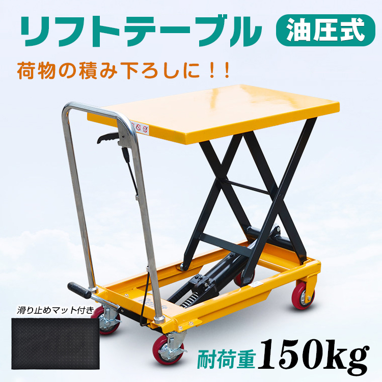 油圧式 リフトテーブル 手押し 台車 手動 油圧式昇降台車 昇降台 耐荷重150kg ハンドリフター キャスター付き リフトアップ 作業台 運搬 荷物 昇降 リフト 台 車載 工具 業務用 積み下ろし 高さ調整 作業効率アップ 昇降リフト テーブルリフト ハンドリフト 油圧昇降式 昇降作業 運搬補助 台車リフター ガレージ 工場 倉庫 物流 DIY 整備 用途多様