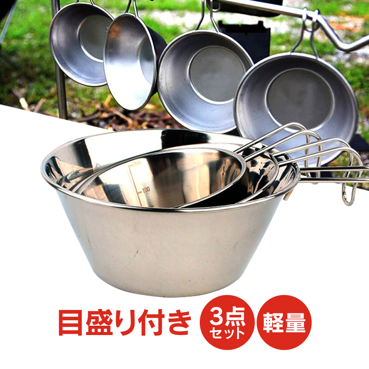 シェラカップ 3個セット フック付 計量器付 鍋 お皿 キャンピングカップ 非常用品 釣 キャンプBBQ アウトドア od297