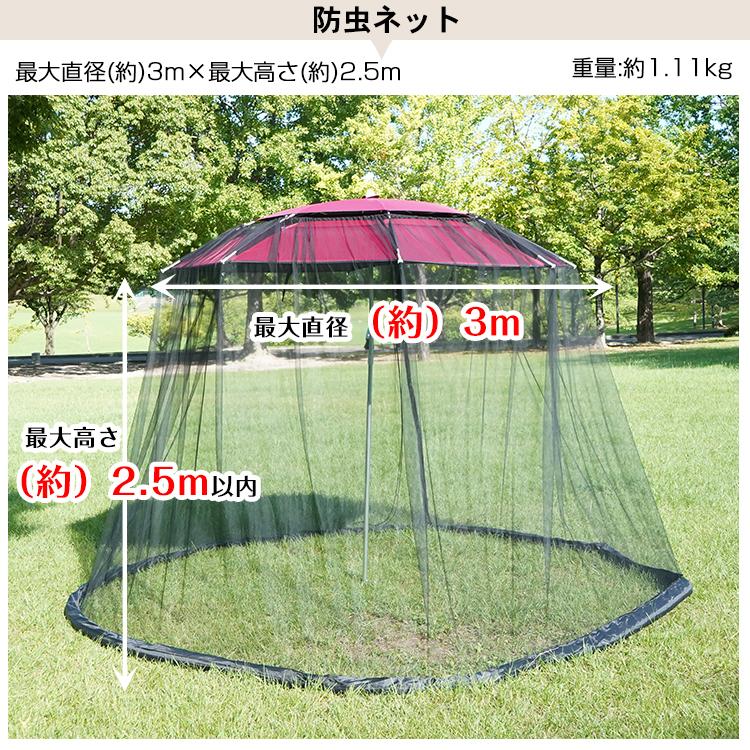 ■パラソル用防虫ネットでパラソル内に虫が入るのを防ぎます。