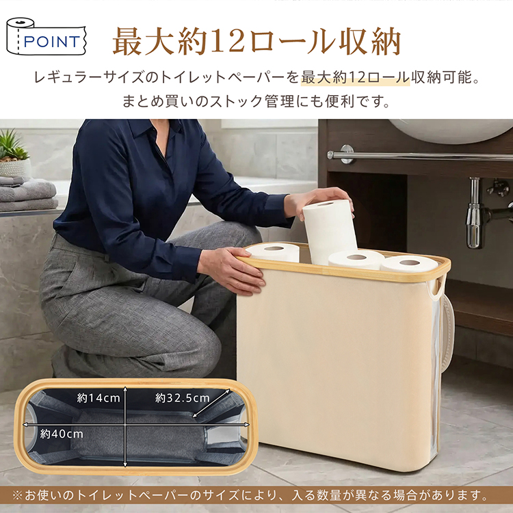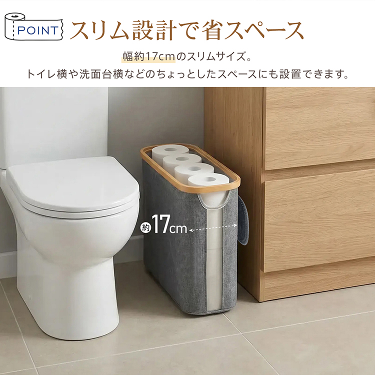 トイレ収納 スリム トイレラック 幅17cm トイレットペーパー収納 12ロール かご 隙間収納 トイレ用品 掃除用具 収納ラック 薄型 サニタリー おしゃれ ナチュラル