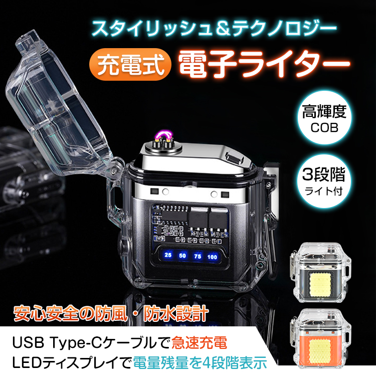 ライター 電子ライター USB充電式 type-c プラズマライター 充電式ライター バッテリーライター 小型 防風 電池残量表示 電気ライター プレゼント おしゃれ
