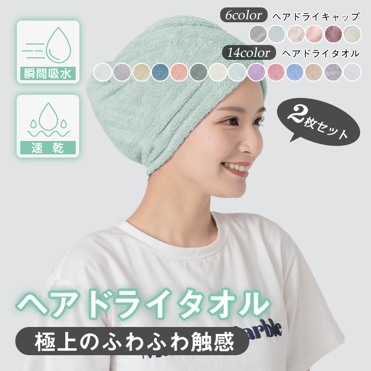 (2枚セット)ヘアタオル タオル ヘアドライタオル 吸水タオル ドライタオル バスタオル タオルキャップ ターバン 吸水速乾 ふわふわ 髪の毛 速乾 フェイスタオル