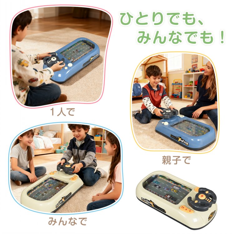 レーシングゲーム カーレース レーシングトイ カーゲーム サウンド付き ドライブゲーム 車 おもちゃ 知育玩具 音楽 ライト 子ども 子供 孫 小学生 幼児 男の子 女の子 室内遊び ゲーム玩具 ハンドル操作 練習 運転気分 ギフト 誕生日 クリスマス プレゼント