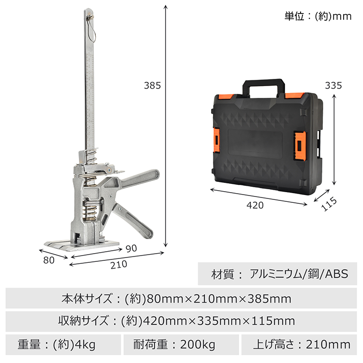 ハンドリフティングツールジャッキ 定規付き 労力節約 アームジャック 多機能 1台2役 高さ調整 ジャッキ 最大耐荷重200kg 壁タイル精密ロケーター 修理用