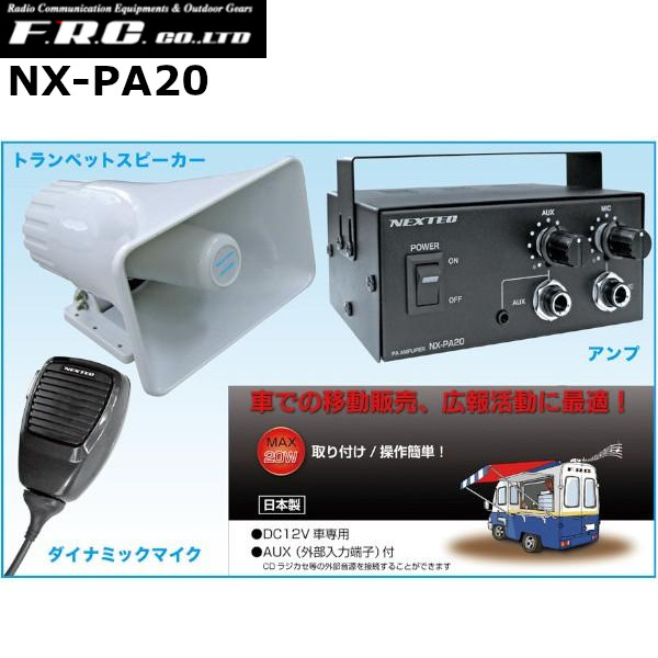 FRC NX-PA20 アンプリファイヤー 車載用拡声器 DC12V車専用 エフアールシー 車載用 拡声器 車 12v 移動販売 広報活動 案内 音源再生 屋外 スピーカー