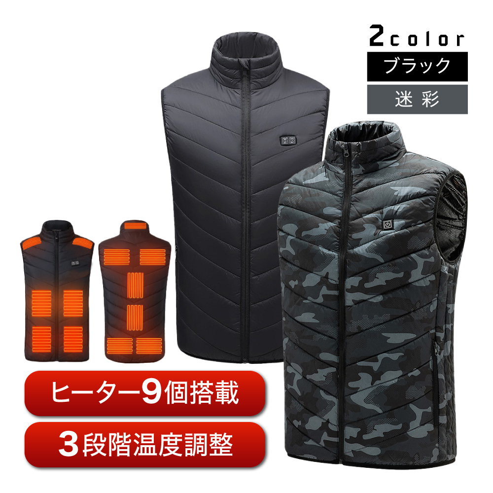 電熱ベスト 9エリア発熱 メンズ レディース 電熱 ベスト USB 3段階調温 アウトドア 水洗い可能