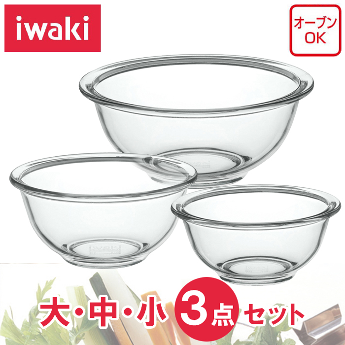keyword→ iwaki 耐熱 3点 ボウル ベーシック 大1500ml 中900ml 小500ml イワキ ガラス ボウル 電子レンジ オーブン 耐熱ガラス 料理 調理