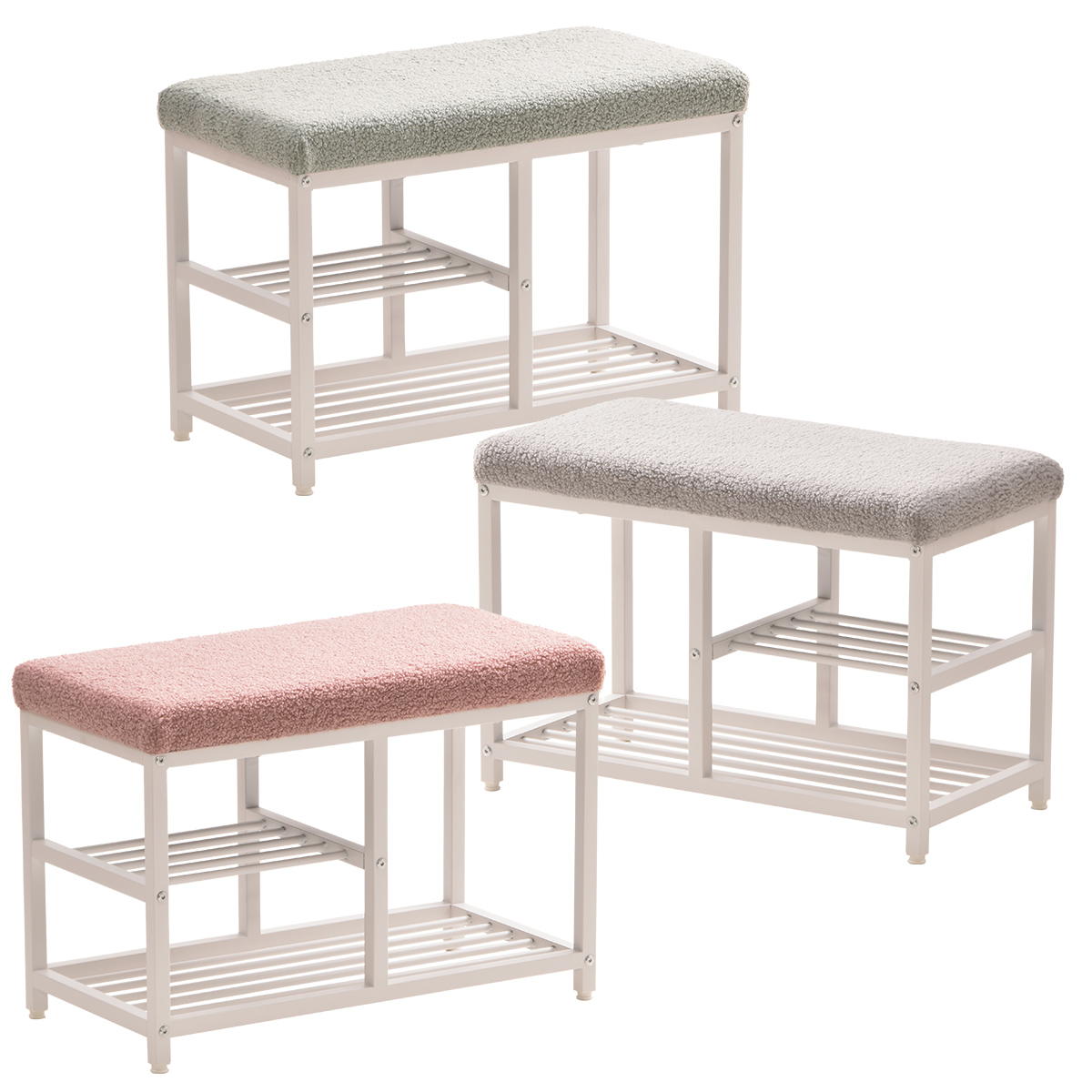 柔らかくてふわっとした風合いのブークレ生地で仕上げたベンチシューズラック。