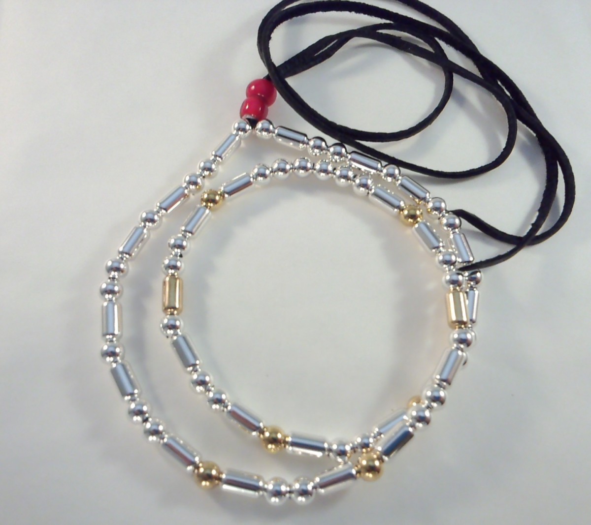 パイプビーズ 一連 シルバー ネックレスに18Kコーティングをした