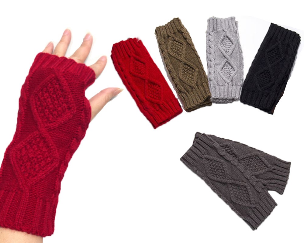 ダイヤ地柄ニット手袋 指なし スマホ対応!