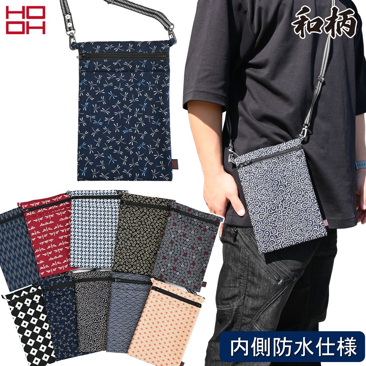 村上被服 和柄ポシェット(縦)101 アジャスター付き紐 お祭り 祭礼用品 おしゃれ かっこいい 春夏 作業着 作業服 HOOH 鳳皇