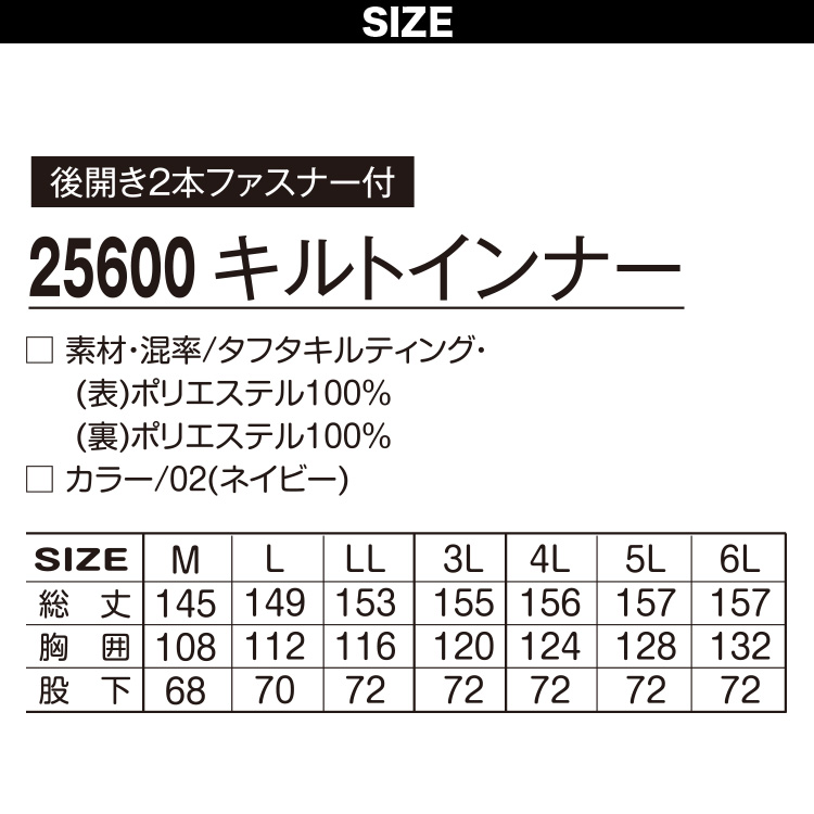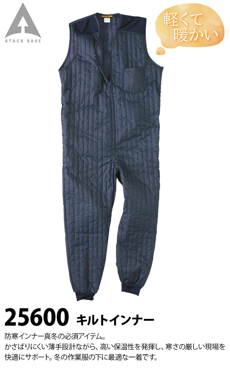 アタックベース キルトインナー 25600 M〜3L 作業服 作業着 防寒着 続服 オーバーオール 秋冬 保温 暖かい メンズ ATACKBASE