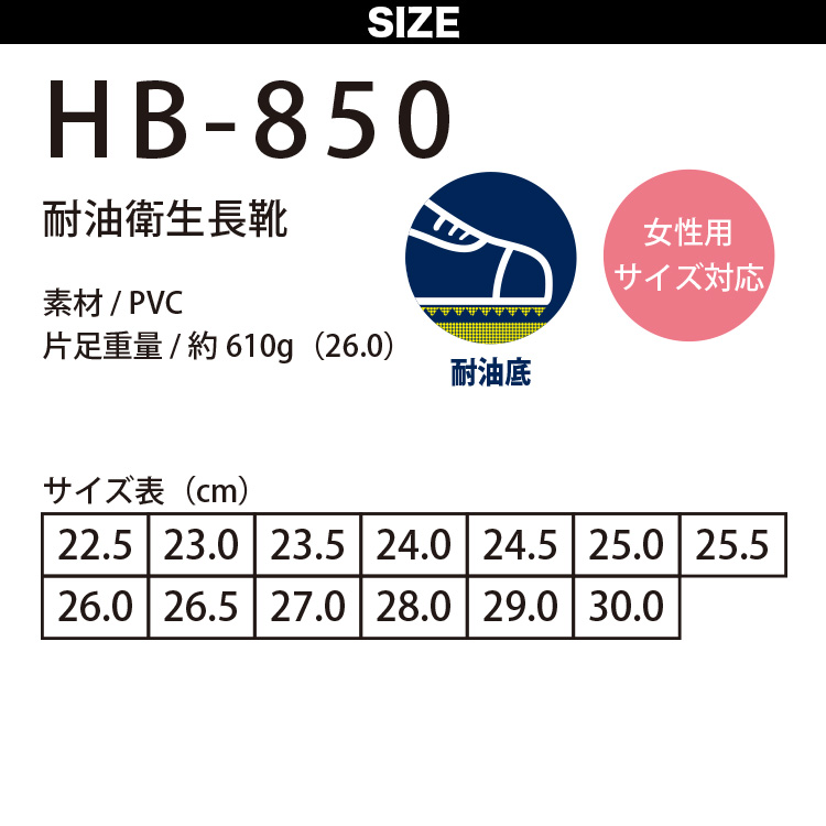 コーコス 耐油衛生長靴 HB-850 食用油や動物性油脂による劣化を防ぐ 魚の脂が付着しても劣化しにくい 厨房・食品工場・給食センター・魚市場・水産加工・漁船