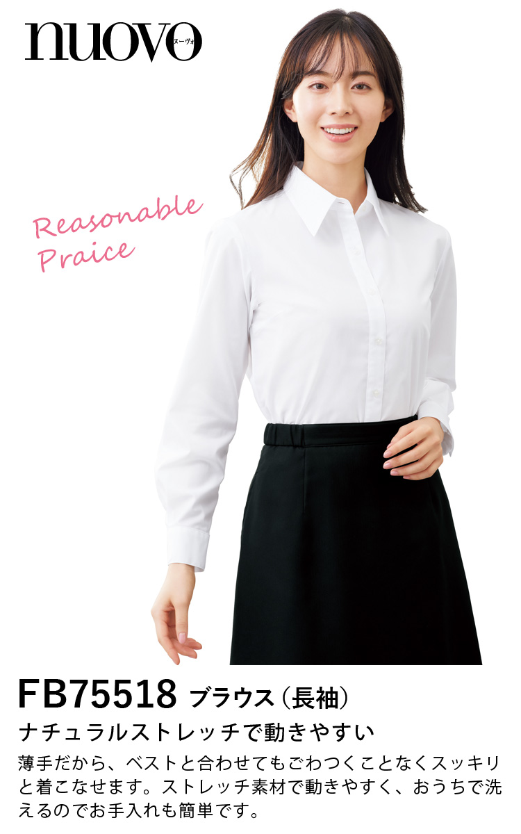 FOLK NUOVO FB75518 ジャケットを脱いでも透けにくいブラウス/リーズナブルプライス/ナチュラルストレッチ/薄手で軽い/事務/医療/接客/オフィス/制服/事務服