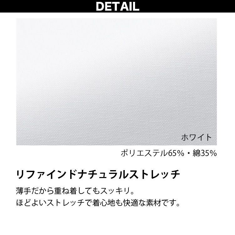 →薄手だから重ね着してもすっきり。程よいストレッチで着心地も快適な素材です。