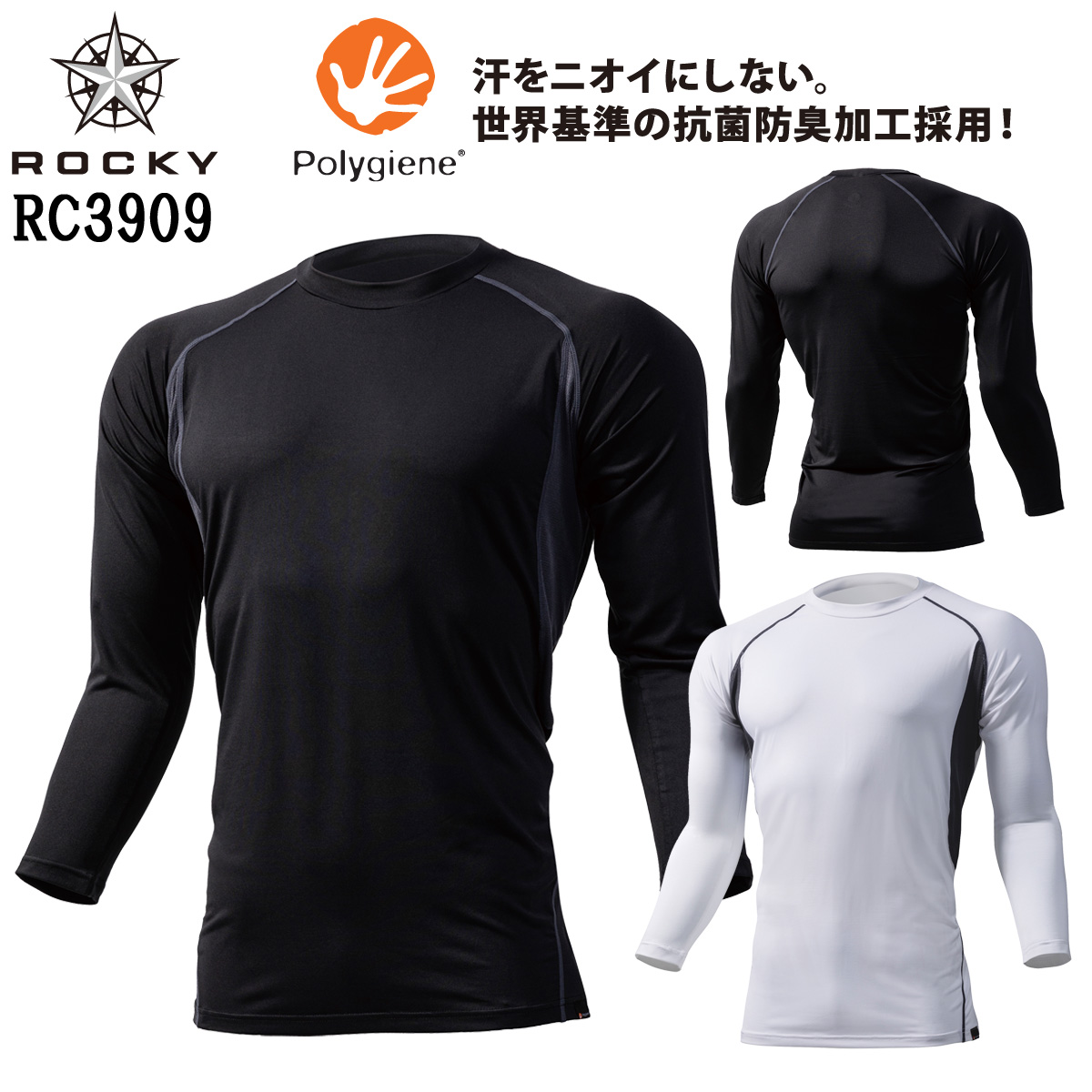 ROCKY 長袖コンプレッション RC3909 ユニセックス ストレッチ 抗菌防臭 ポリジン 作業着 インナー BONMAX ボンマックス ロッキー