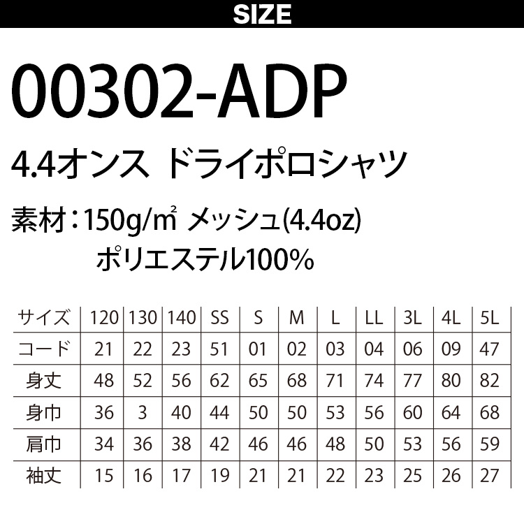 生地:メッシュ 150g/m2(4.4oz)