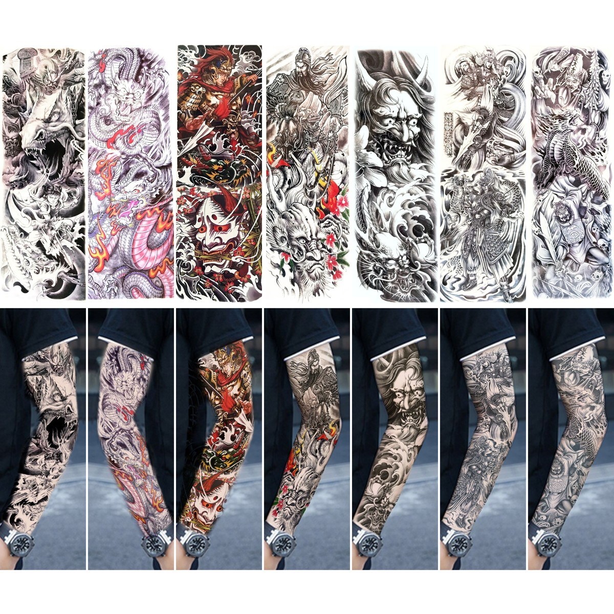 腕全面を大迫力に演出する、大型サイズのタトゥーシールです。