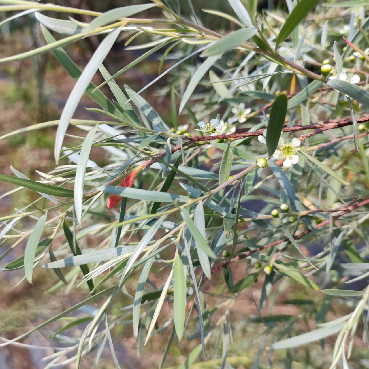 シルバー・ウィーピング・ティーツリーは、青みのあるコンパクトな細長い葉をもつティーツリーです。