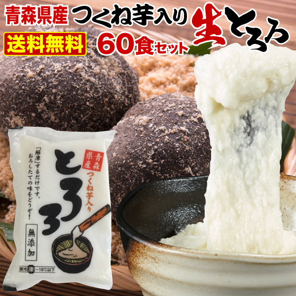 とろろ 冷凍 送料無料 青森県産 つくね芋入り生とろろ60食 2種類の山芋 青森県産長芋 栄養豊富 無添加 グルメ Y凍