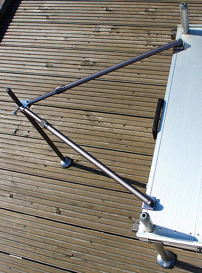 アルミ釣り台の横や後ろにつけられる足付きのサイドハンガー、「自在式補助アーム」です。