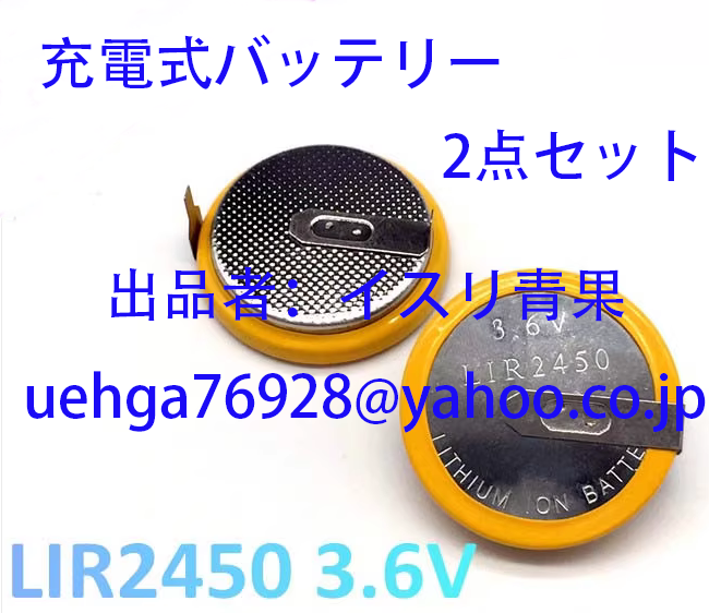 新品 LIR2450 充電式バッテリー リチウムイオンコインボタン電池 ラグ付きニッケル端子型 2点セット
