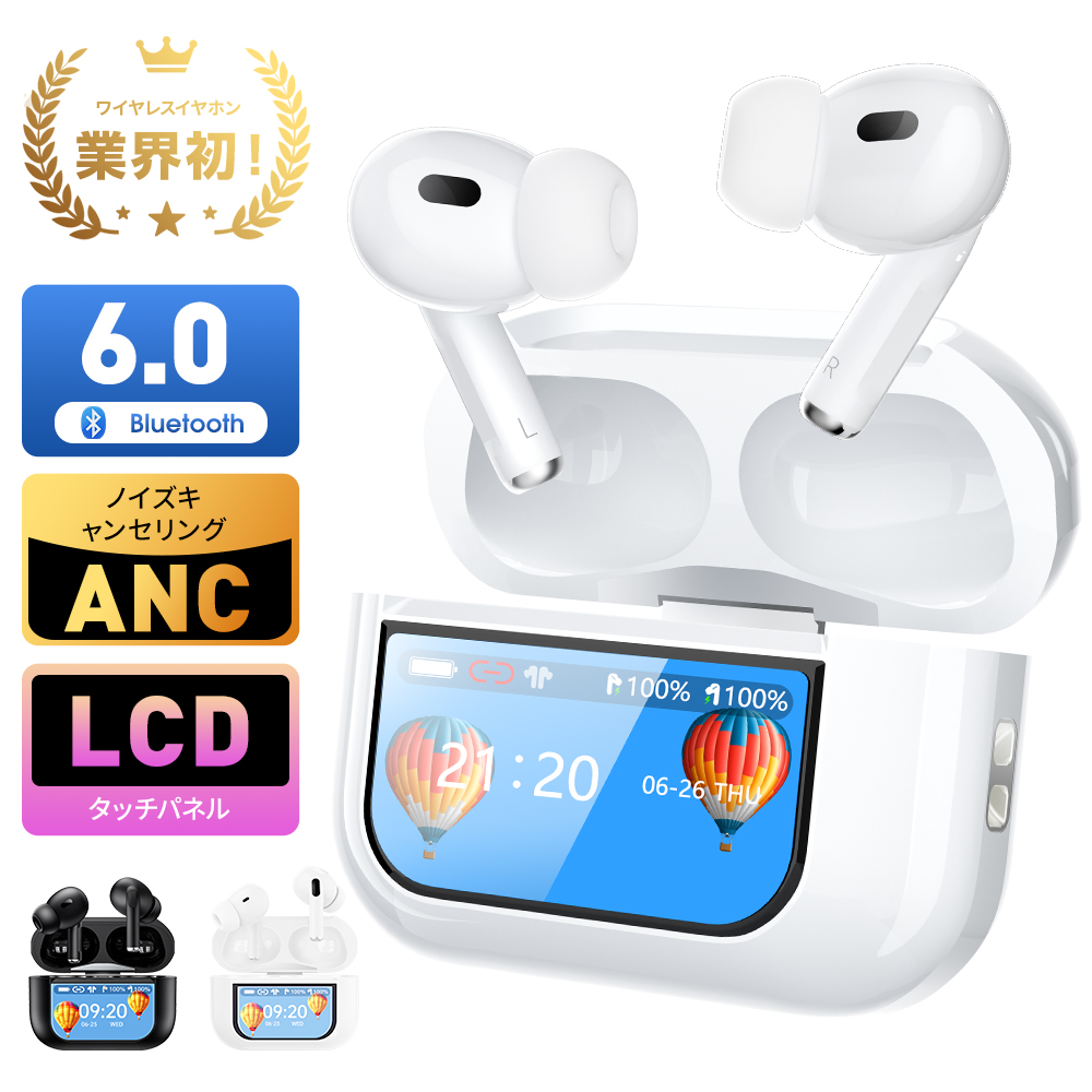 ワイヤレスイヤホン Bluetooth6.0 イヤホン カナル型 ANC搭載 LCDタッチディスプレイ 液晶付き ノイズキャンセリング 自動ペアリング 両耳 左右分離型 通話 2026
