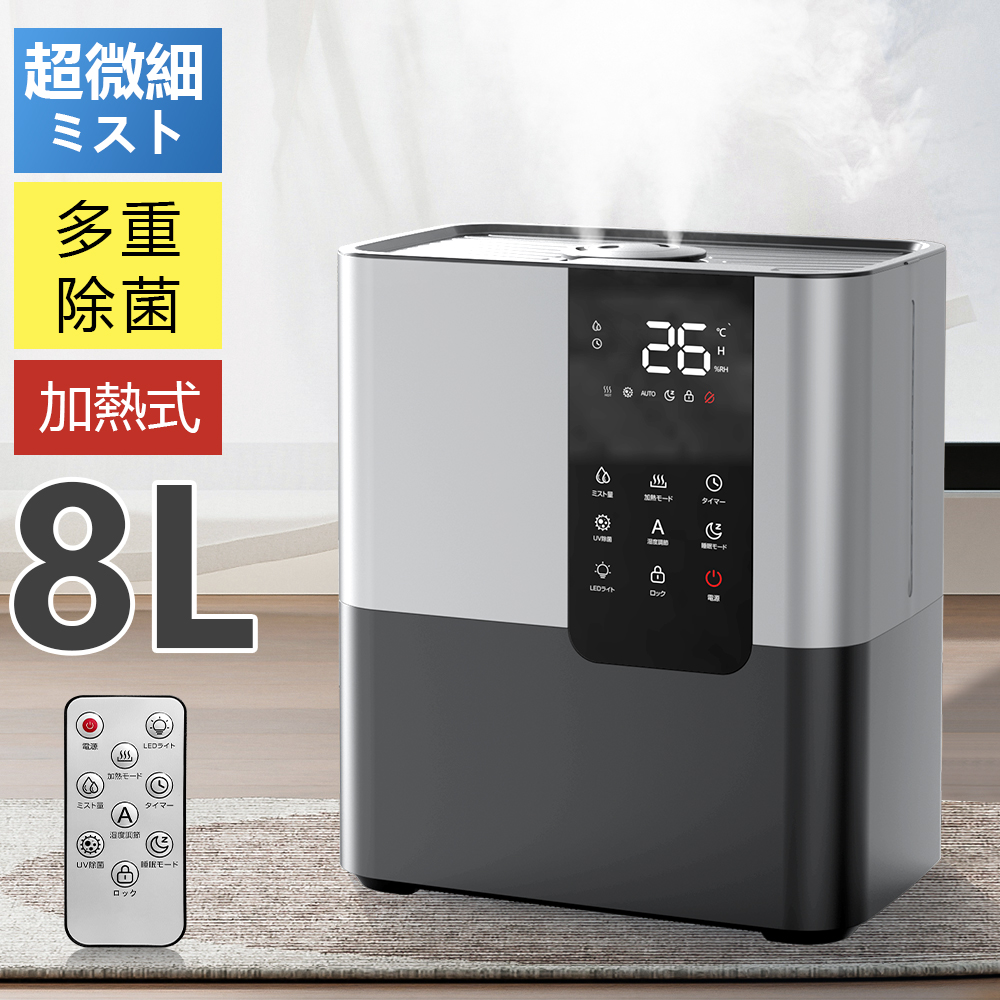 加湿器 大容量 8L 卓上 スチーム式 超音波式 花粉対策 四重除菌 ハイブリッド加湿器