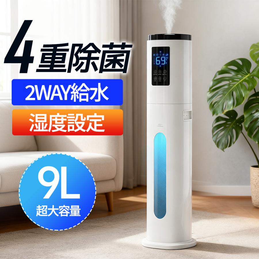 加湿器 大容量 9L 業務用 超音波式 スチーム式 四重除菌 UV除菌 Agイオン搭載 マイナスイオン 空気清浄 上から給水 2026最新型 静音 タイマー付 リモコン操作 卓上 フロア置き 空焚き防止 お手入れ簡単 オフィス 学校 幼稚園 保育園 介護施設 店舗 ショールーム 病院 工場 家庭用 乾燥対策 冬用 ホワイト ギフト プレゼント クリスマス 誕生日 敬老 引越し祝い 新居祝い